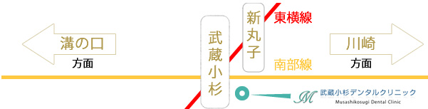 | 溝の口から | 武蔵溝の口駅~武蔵小杉駅(8分) |