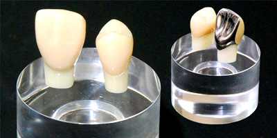 | 特徴 | 金属をセラミックで覆います。 セラミックは表面が滑沢で、見た目に優れ、水分を弾くため、変色がなく、細菌を付着しにくくするため、虫歯や歯周病を起こしにくくするという利点があります。 |