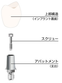 | 術式・特徴 | インプラントボディーに接続する土台(アバットメント)及び被せ物を合わせて設計は上部構造と言います。 患者様の状況に合わせて専任の技工士と相談し、審美的、機能的、清掃性に最も適したものを装着致します。 |